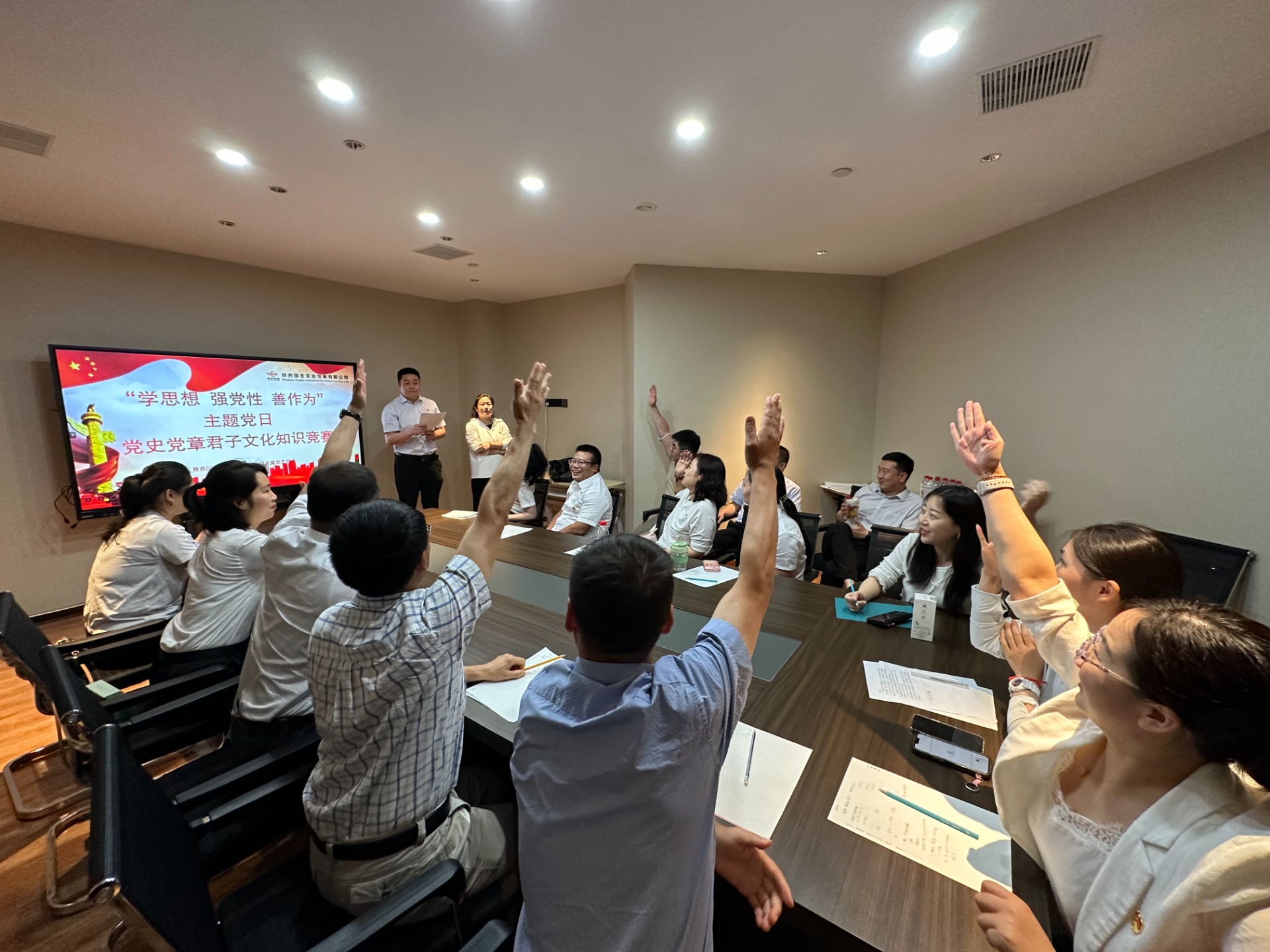 20日下午,公司直屬黨支部三名黨員幹部以題爲《共産黨員的形象》、《克己奉公 以儉修身》、《如何做一名合格共産黨員》給全體黨員幹部上了一堂主題深刻、内容豐富、意義深遠的主題黨課。緊接着三名黨員將(jiāng)自己心中的《忻口戰役》、《真理的味道(dào)真甜》、《一件舊軍襖背後(hòu)的故事(shì)》黨史故事(shì)分享給了全體黨員,通過(guò)黨史小故事(shì)汲取信仰的力量,在學(xué)思踐悟中堅定理想信念。活動中,還(hái)穿插了黨史知識、君子文化知識競賽,參與黨員幹部個個十拿九穩,對(duì)答如流,將(jiāng)學(xué)習活動推向(xiàng)高潮。