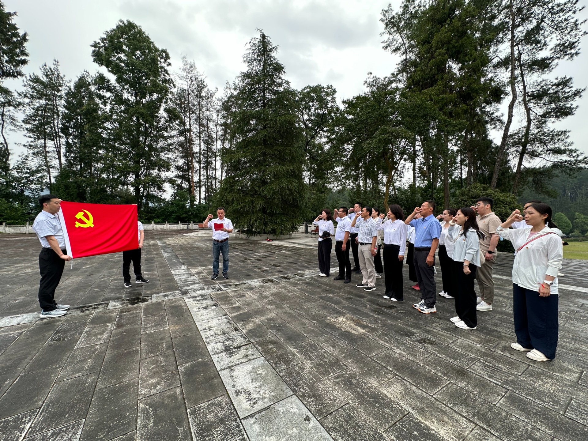 最後(hòu),全體黨員幹部來到革命烈士紀念碑前,面(miàn)對(duì)鮮紅的黨旗,莊嚴地舉起(qǐ)右拳,重溫入黨誓詞,再次感受那令人激動無比的入黨時刻。