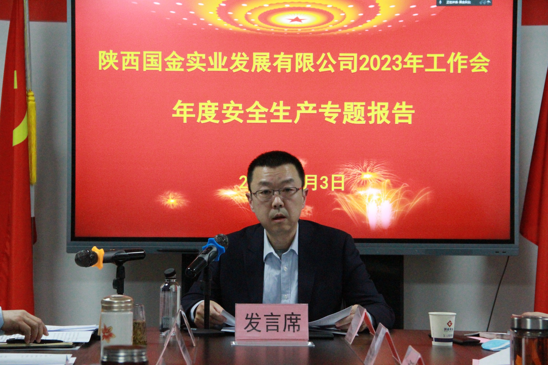 本次會議以現場會和騰訊會議相結合的形式召開(kāi),公司領導班子成(chéng)員、本部和國(guó)金地産全體員工、其他各企業主要負責人參加現場會議,子公司人員參加視頻會議。