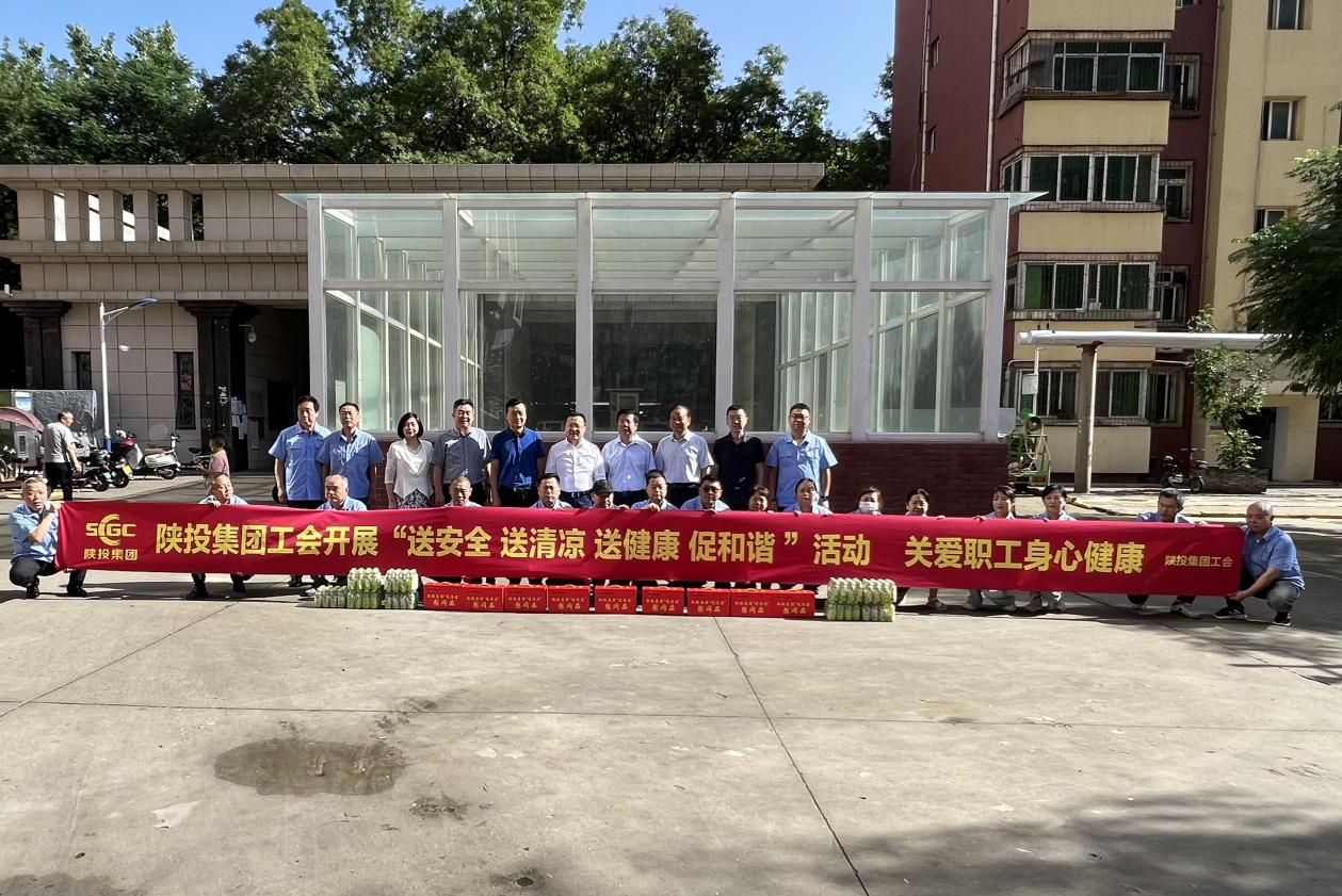 爲進(jìn)一步加強對(duì)基層員工的關心關愛,做好(hǎo)高溫季節防暑降溫工作,7月4日上午,陝投集團黨委副書記、總經(jīng)理趙軍一行到國(guó)金物業開(kāi)展“送清涼”活動。趙軍一行看望慰問了國(guó)金物業員工,并向(xiàng)他們送上了飲料、冰糖、茶葉等防暑降溫用品。