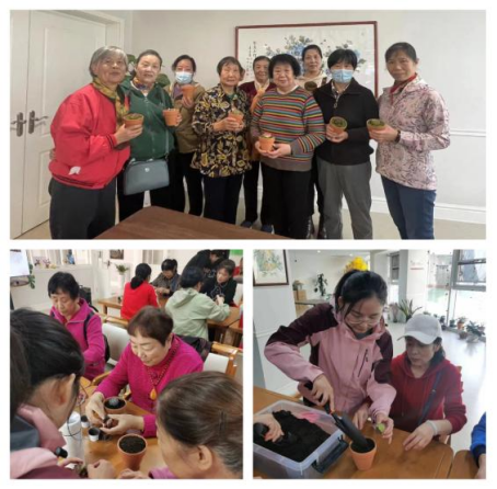 在工作人員的帶領下,老人們體驗手工教室、畫扇面(miàn)、花房種(zhǒng)植多肉花、做手指操。