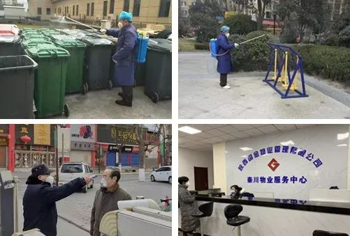各物業一線工作人員認真做好(hǎo)消殺、體溫檢測與物業服務工作