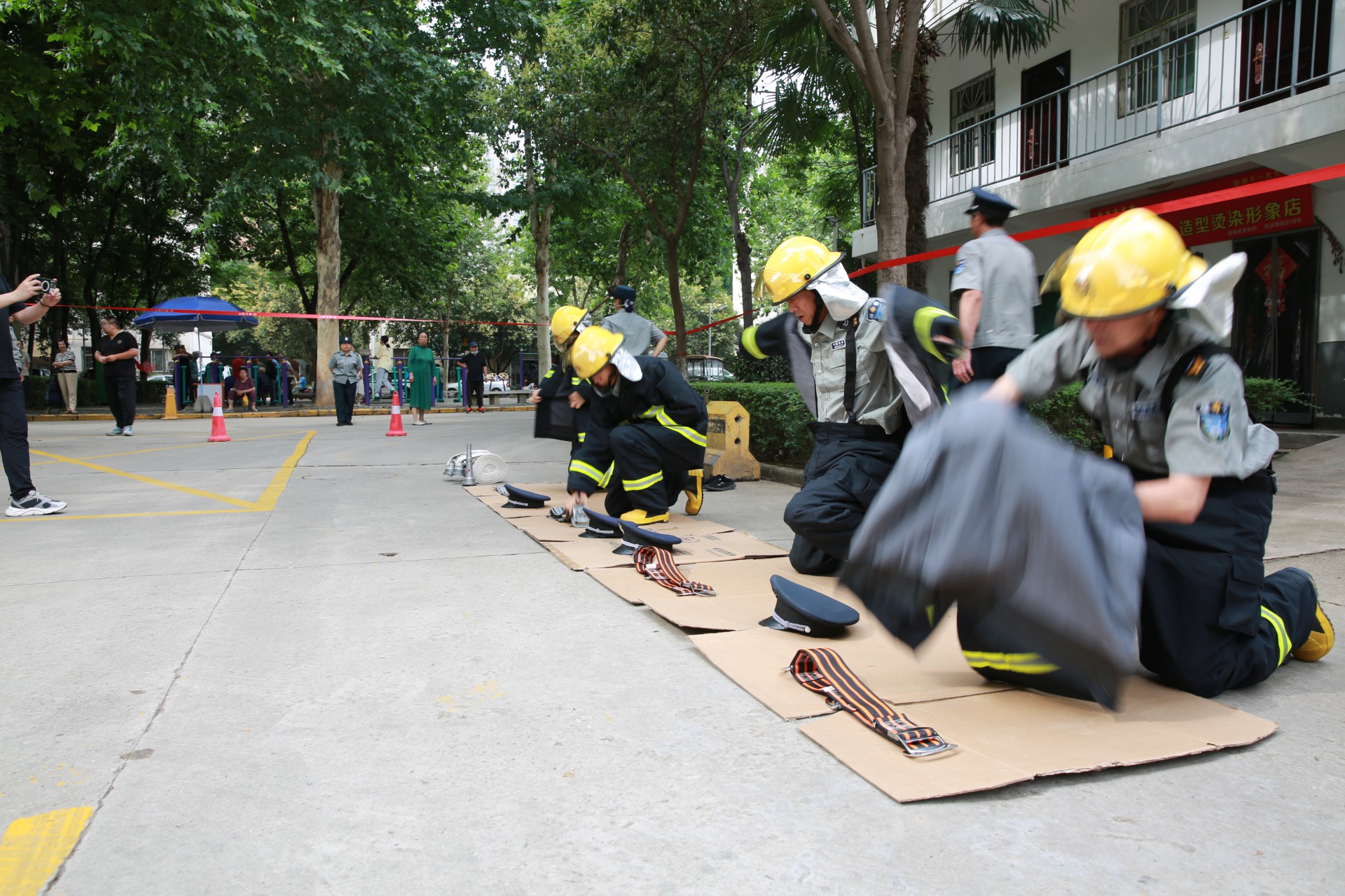 演練通過(guò)模拟居民小區發(fā)生火災的同時,出現電梯困人事(shì)件,小區物業單位先期啓動應急預案,并向(xiàng)119、120求助,開(kāi)展了火警檢查、滅火救援、人員疏散、醫療救治等一系列應急行動,并穿插展示了防火戰鬥服穿戴、挪車器快速挪移違停車輛、水帶鋪設等演練科目,生動全面(miàn)地展示了居民小區火災事(shì)故和電梯困人事(shì)件的應急救援全過(guò)程。
